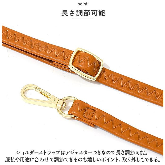 ・ショルダーストラップはアジャスターつきなので長さ調節可能。服装や用途に合わせて調節できるのも嬉しいポイント。取り外しもできる。