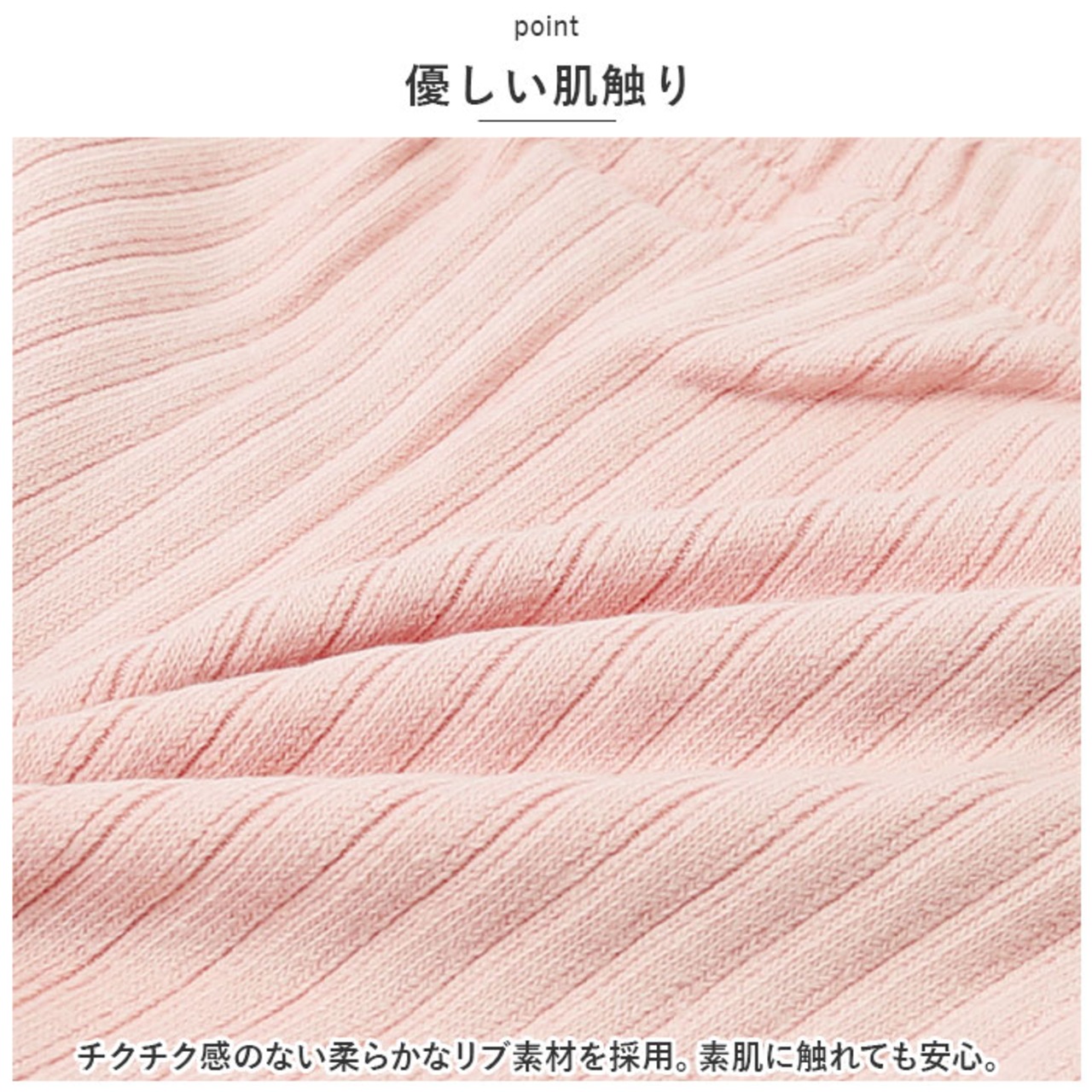 ・チクチク感のない柔らかなリブ素材を採用。素肌に触れても安心。