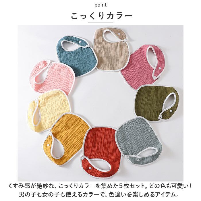 ・毎日使いにちょうど良い!!絶妙なこっくりカラーが可愛い☆シンプルな スタイ 5枚セット が登場。