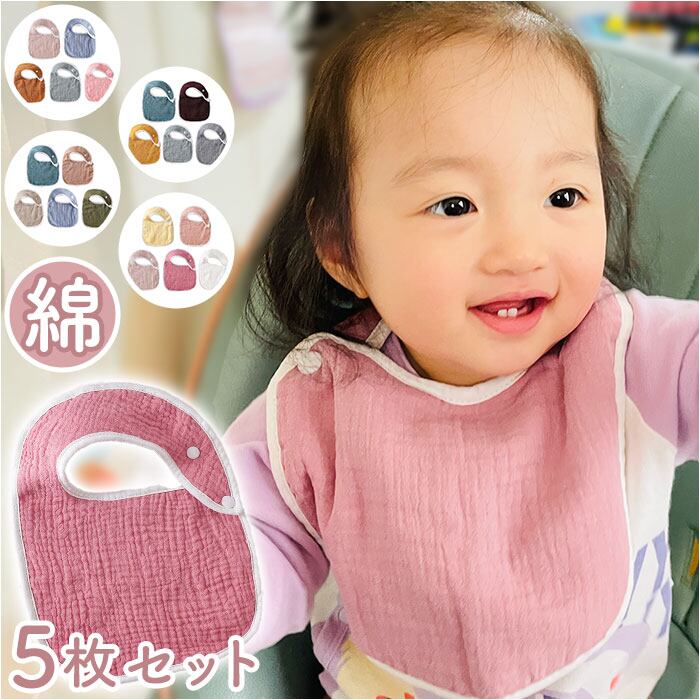 ベビー スタイ よだれ掛け 通販 よだれかけ 前かけ 5枚セット セット お食事エプロン ベビービブ 綿 コットン 吸収性 スナップ 無地 シンプル ナチュラル 保育園 幼稚園 お出かけ 食事 かわいい カワイイ エプロン 赤ちゃん 新生児 男の子 女の子