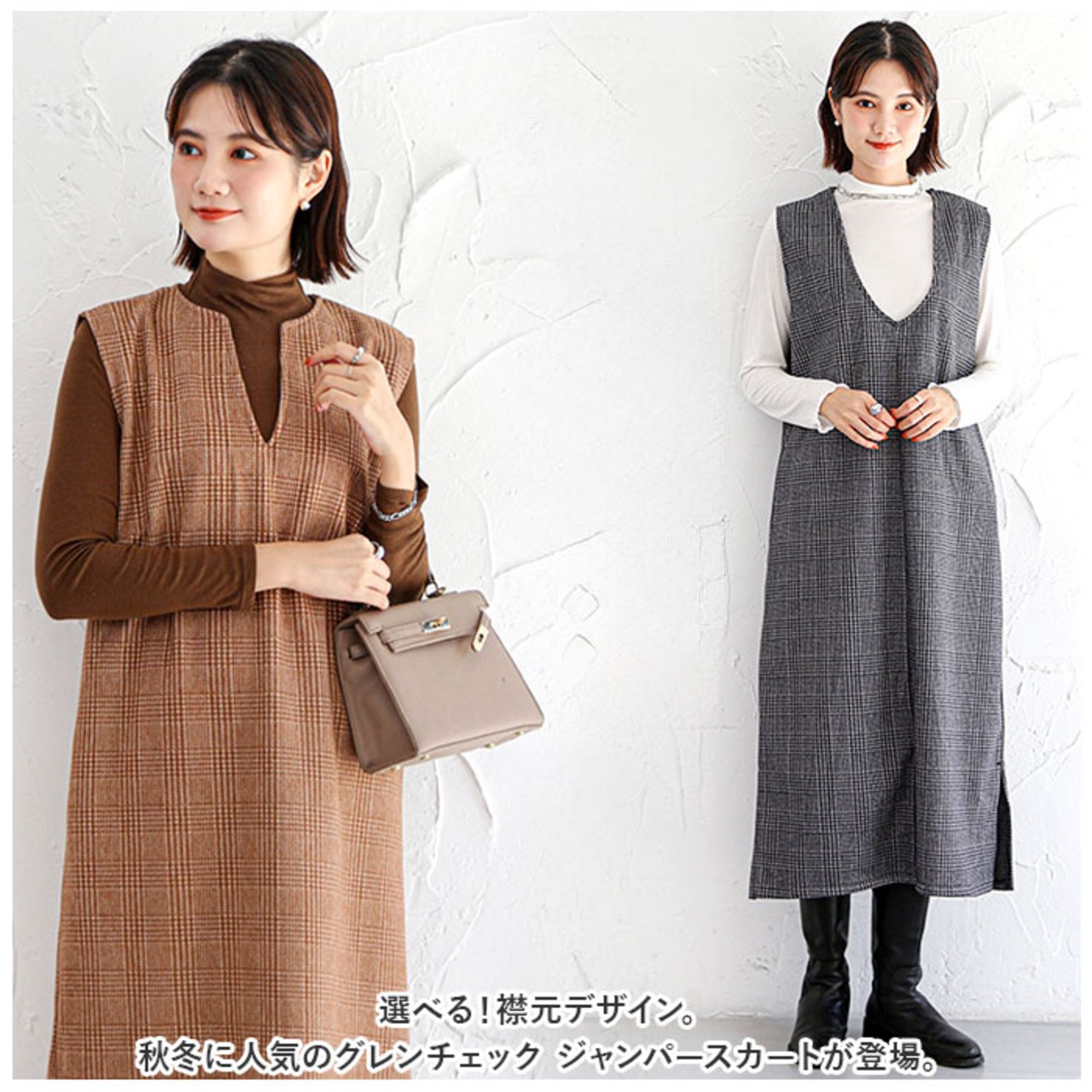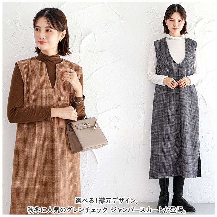 ・選べる!襟元デザイン。秋冬に人気のグレンチェック ジャンパースカート が登場。