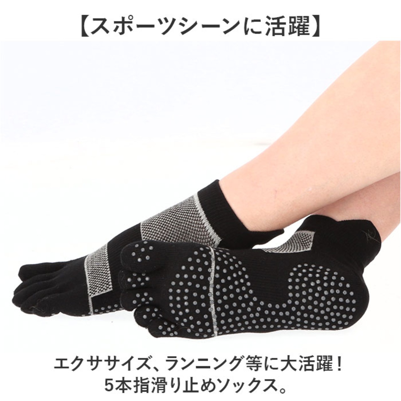 ・エクササイズ、ランニング等に大活躍!5本指滑り止めソックス。