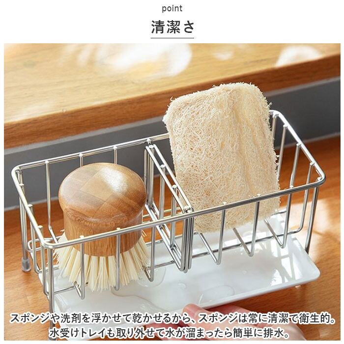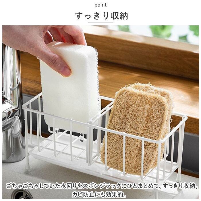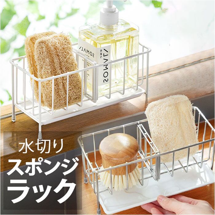 スポンジラック 通販 水切りラック スポンジホルダー スポンジ置き 洗剤置き 置き型 水が流れる シンク 水切り 排水 ラック キッチン 台所 洗面所 お風呂 ハンドソープ クリーム 清潔 衛生的 水回り 収納 スリム コンパクト 錆びにくい