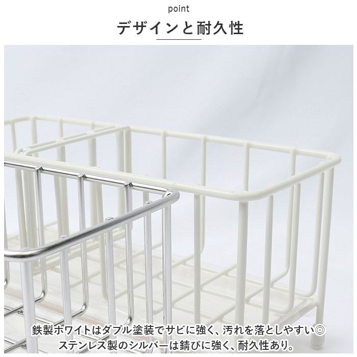 ・鉄製ホワイトはダブル塗装でサビに強く、汚れを落としやすい◎ステンレス製のシルバーは錆びに強く、耐久性あり。