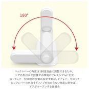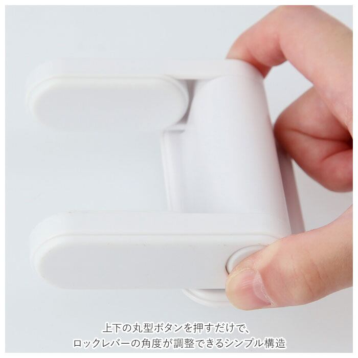 ・上下の丸型ボタンを押すだけで、ロックレバーの角度が調整できるシンプル構造。ロックレバーの角度は180度自由に調整できるため、ドアの形状など設置する環境にフレキシブルに対応。