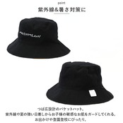 ・つば広設計のバケットハットは日差しからお子様の敏感なお肌をガードしてくれる。お出かけや登園登校にぴったり。