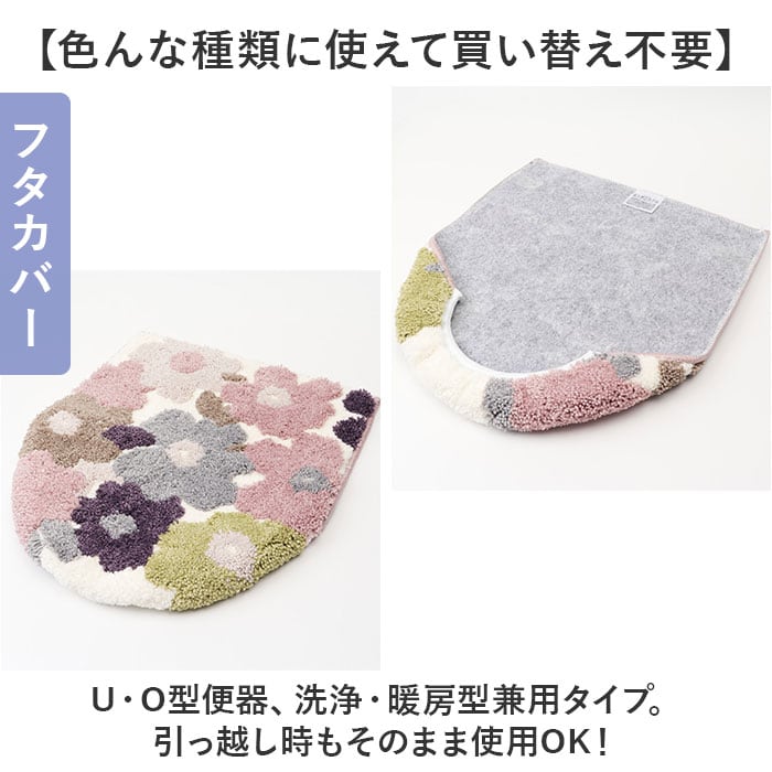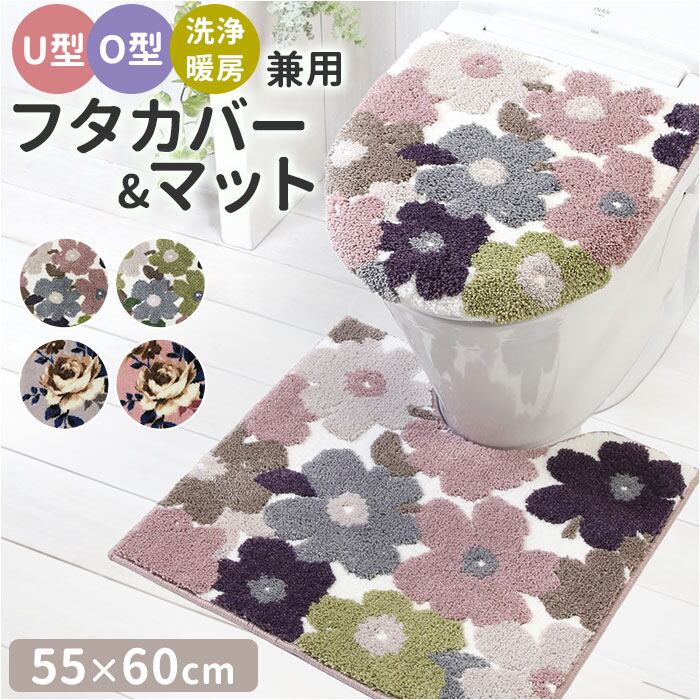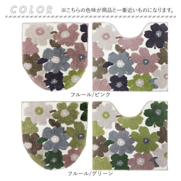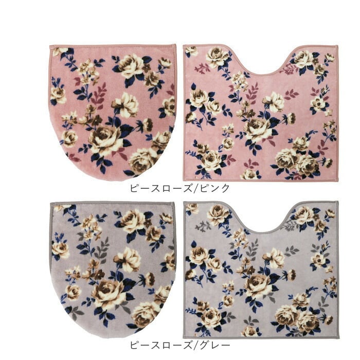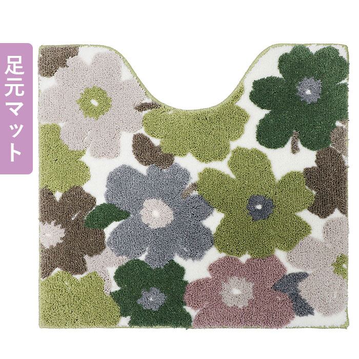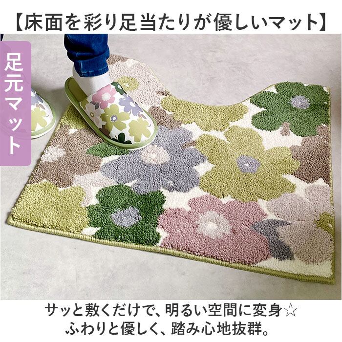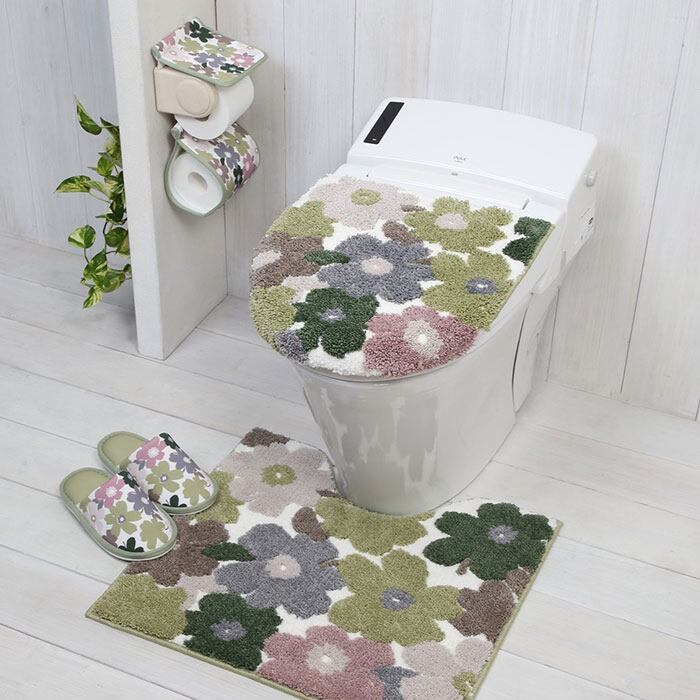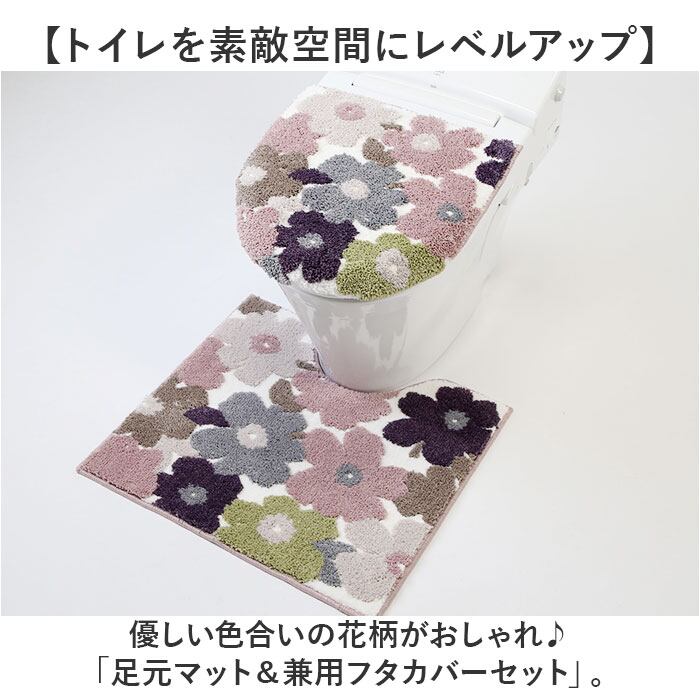 ・優しい色合いの花柄がおしゃれ♪「足元マット&兼用フタカバーセット」。