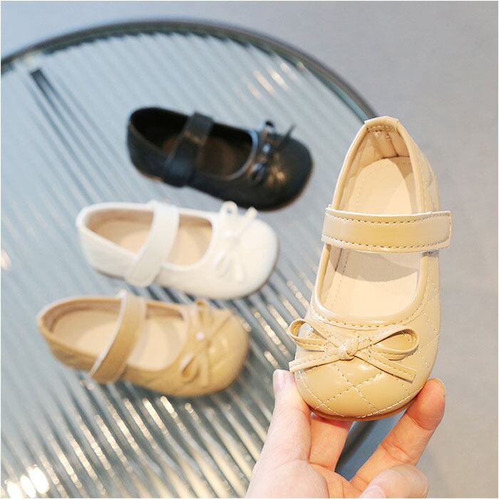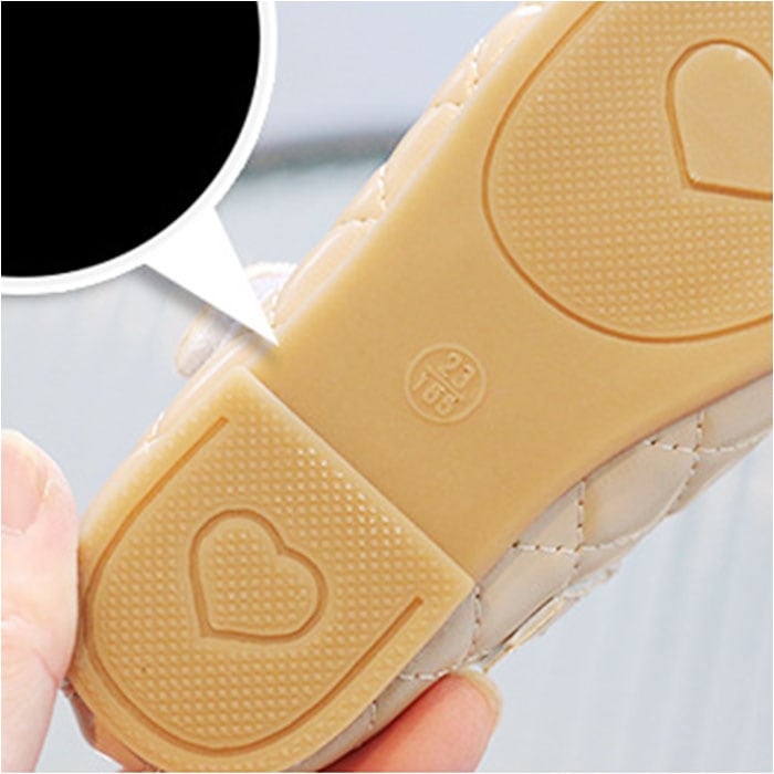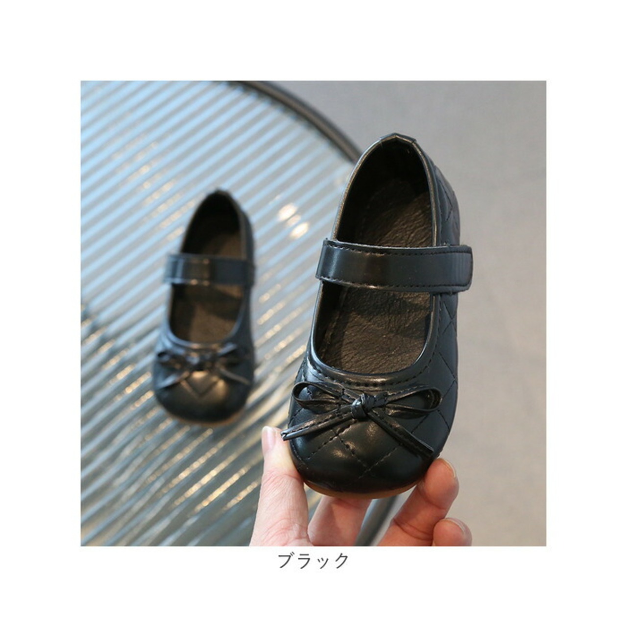 ・手触り滑らかなPU素材にステッチデザイン。つま先のリボンモチーフがアクセント。