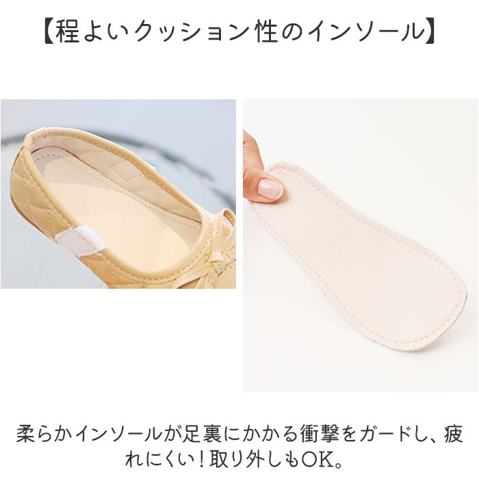 ・柔らかインソールが足裏にかかる衝撃をガードし、疲れにくい!取り外しもOK。