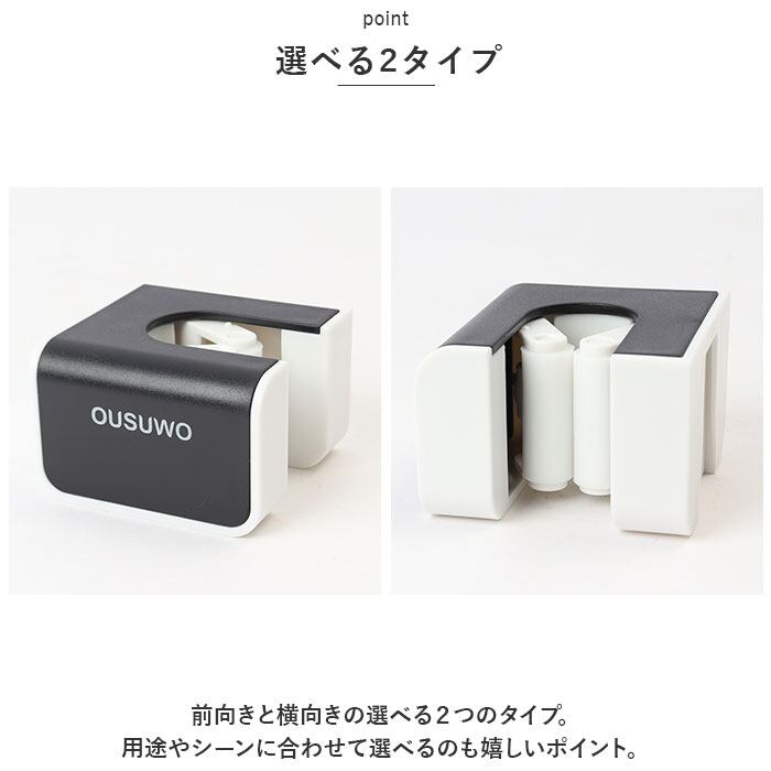 ・前向きと横向きの選べる2つのタイプ。用途やシーンに合わせて選べるのも嬉しいポイント。