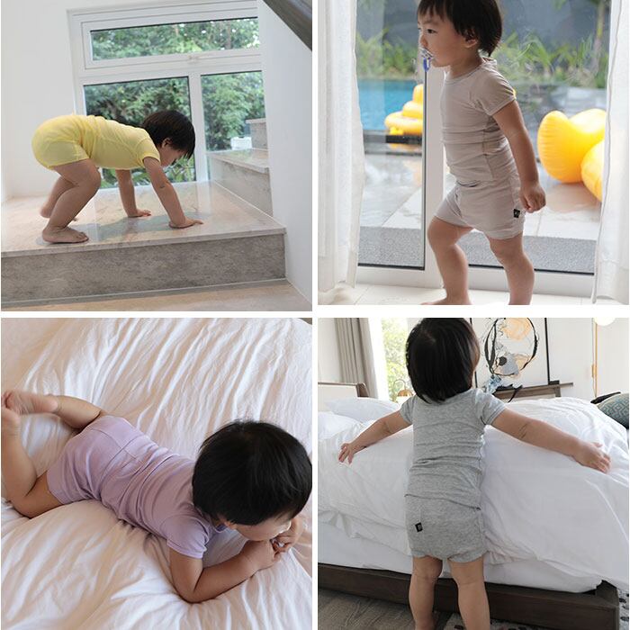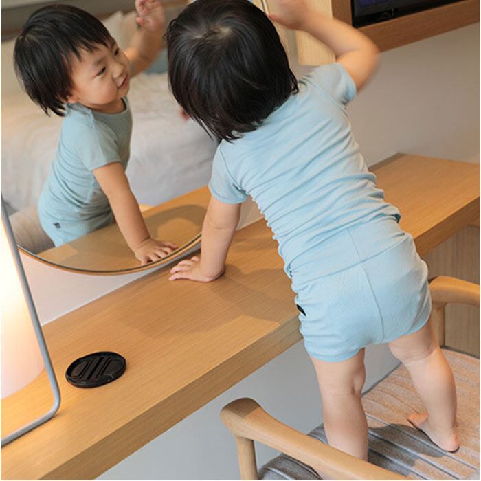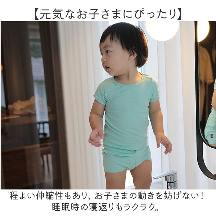 ・程よい伸縮性もあり、お子さまの動きを妨げない!睡眠時の寝返りもラクラク。