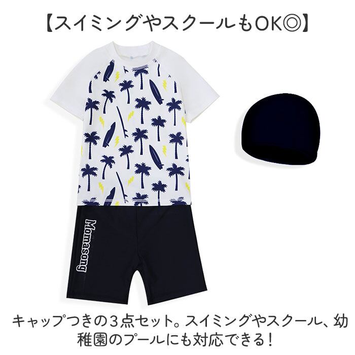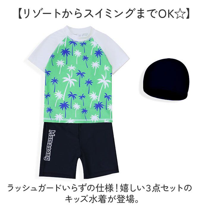 ・ラッシュガードいらずの仕様!嬉しい3点セットの キッズ水着が登場。