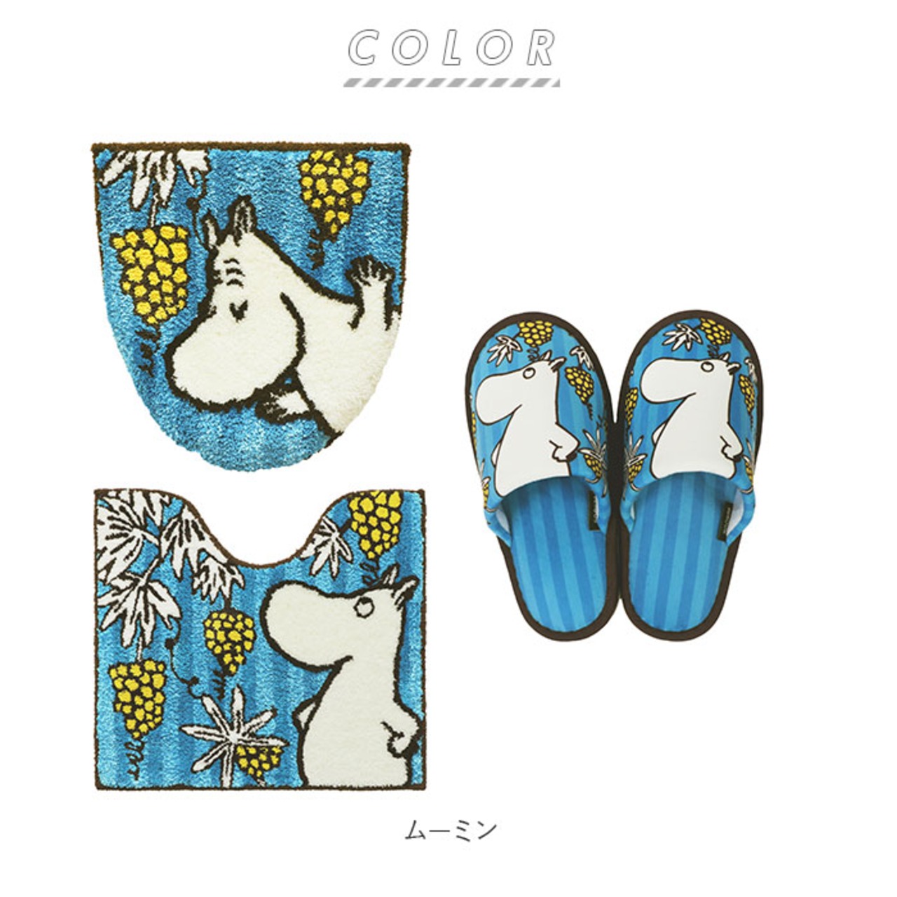 ・可愛いムーミンのキャラクターがトイレ空間を彩ってくれる同色フタカバー&トイレマットとスリッパの3点セットが新登場。