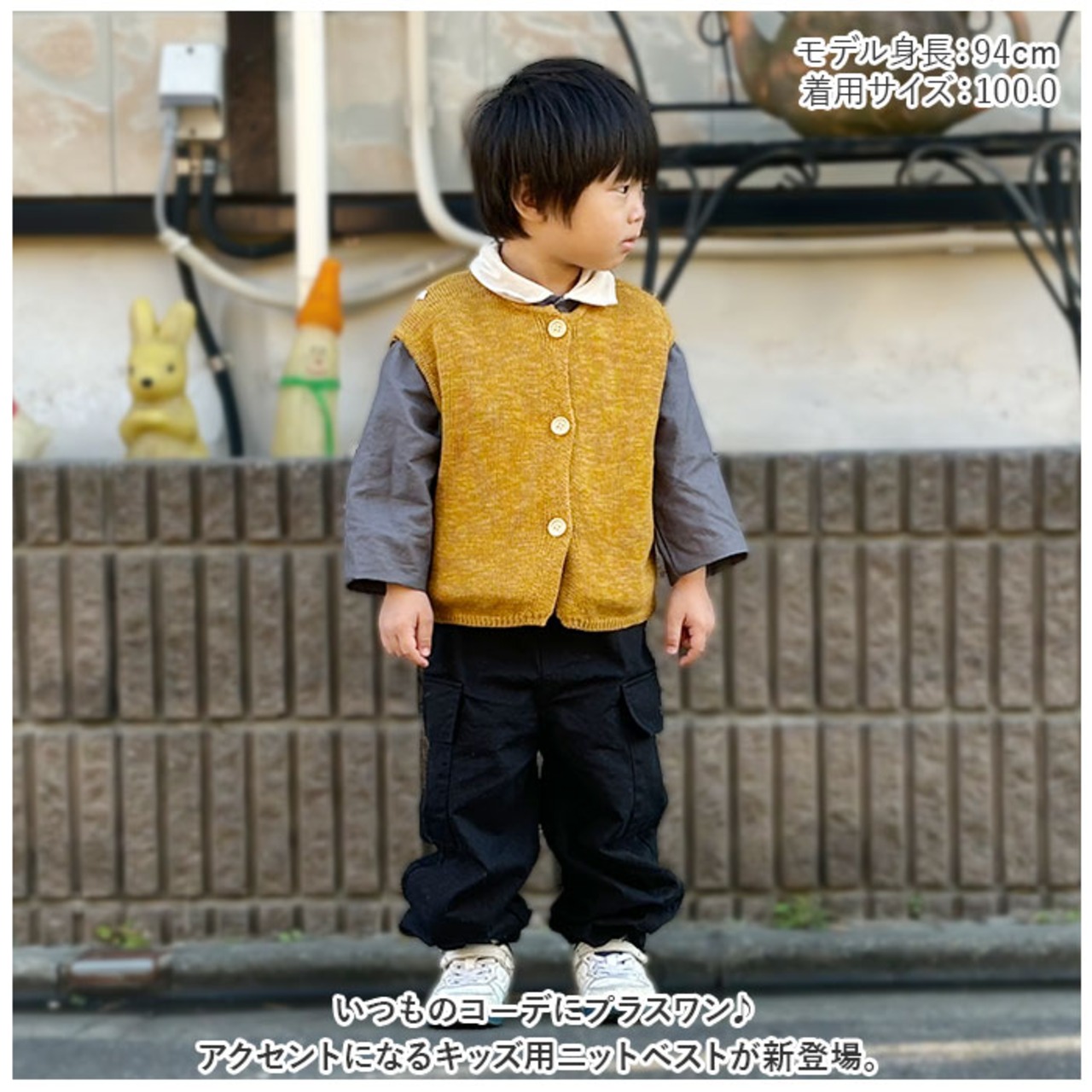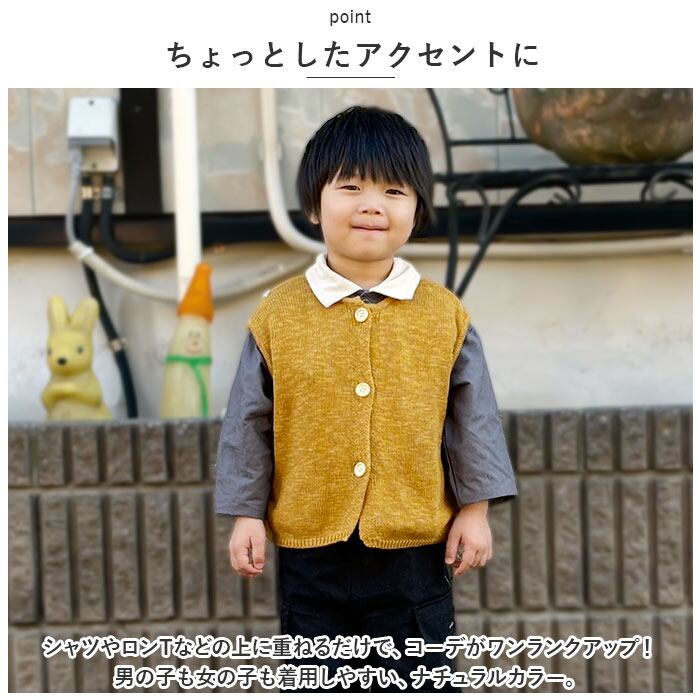・シャツやロンTなどの上に重ねるだけで、コーデがワンランクアップ!男の子も女の子も着用しやすい、ナチュラルカラー。