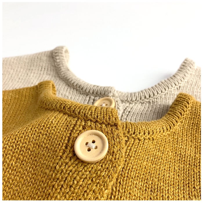 ・ベーシックなフロントボタンタイプ。サッと羽織れて着替えもラクラク。