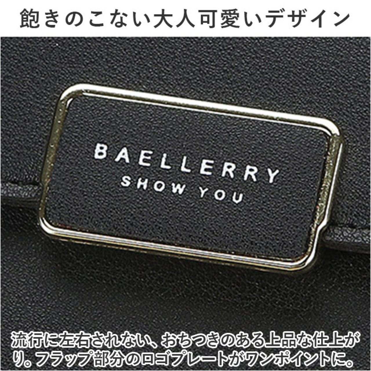 ・流行に左右されない、おちつきのある上品な仕上がり。フラップ部分のロゴプレートがワンポイントに。