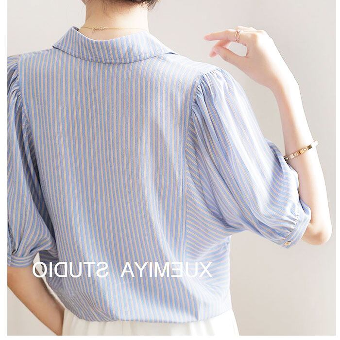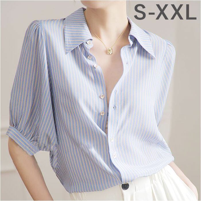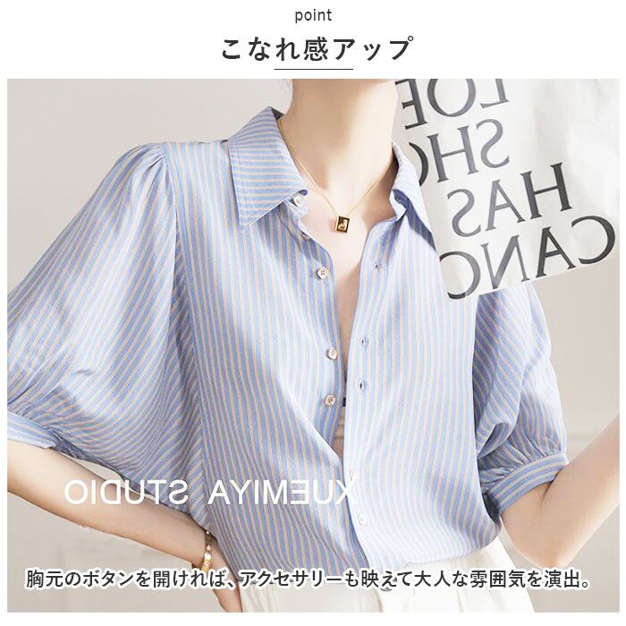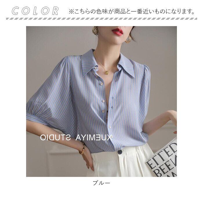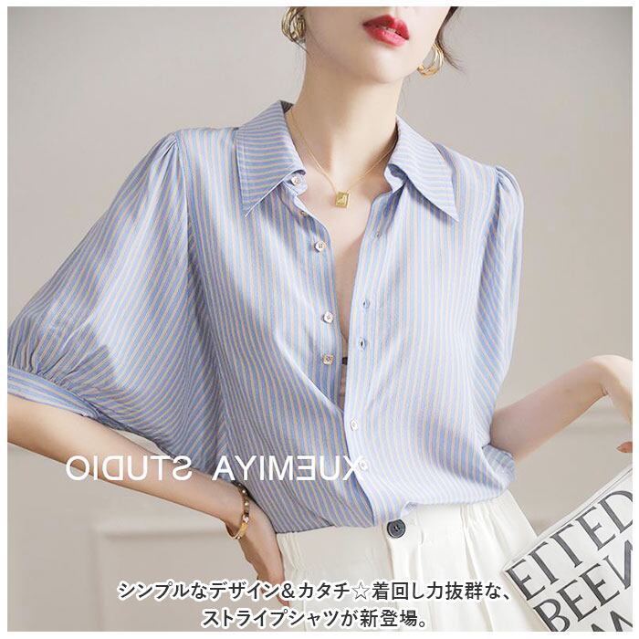 レディース 五分袖 ブラウス 通販 シャツ シルクシャツ シルク きれいめ ドルマンスリーブ ゆったり ストライプ カジュアル 大人 かわいい オフィス ビジネス OL デザイン 夏