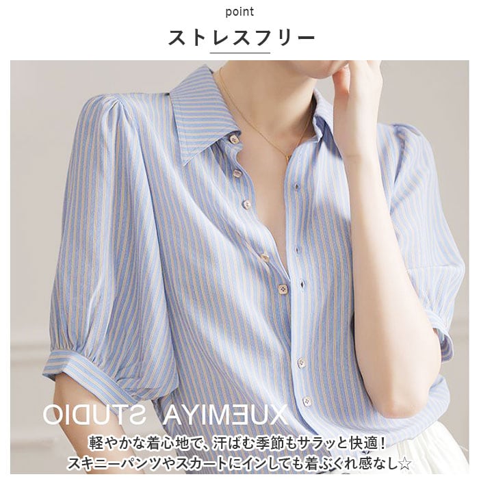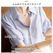 五分袖ブラウス ドルマンスリーブ ストライプ yknc568
