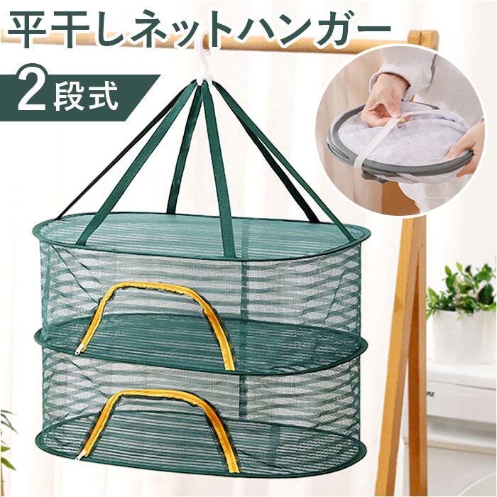 平干しネット 通販 ネットハンガー 物干しネット 2段 2段式 折りたたみ 型崩れ防止 乾燥 衣類 防風 セーター ニット ぬいぐるみ 野菜 ドライフルーツ 天日干し 干し網 コンパク 開放円型 梅干 干しかご 虫除け