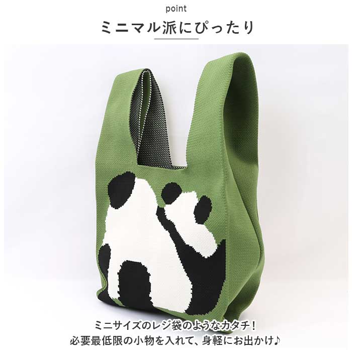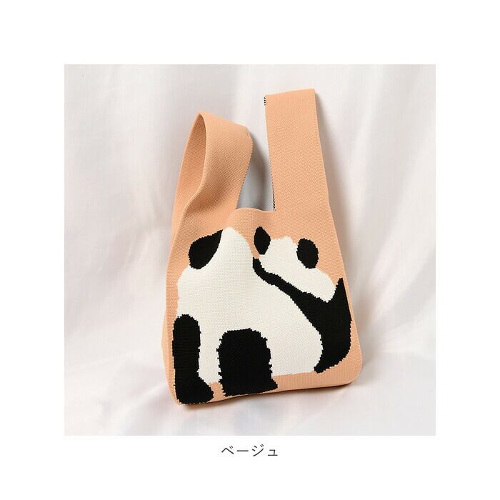トートバッグ ニット 動物 通販 ニットトート ニットバッグ ニットバック サマーニット トートバック サブバッグ サブバック 小さめ ミニ ミニバッグ トート 手提げ かわいい やわらかい 柔らかい 折りたためる 折り畳める カジュアル アニマル パンダ