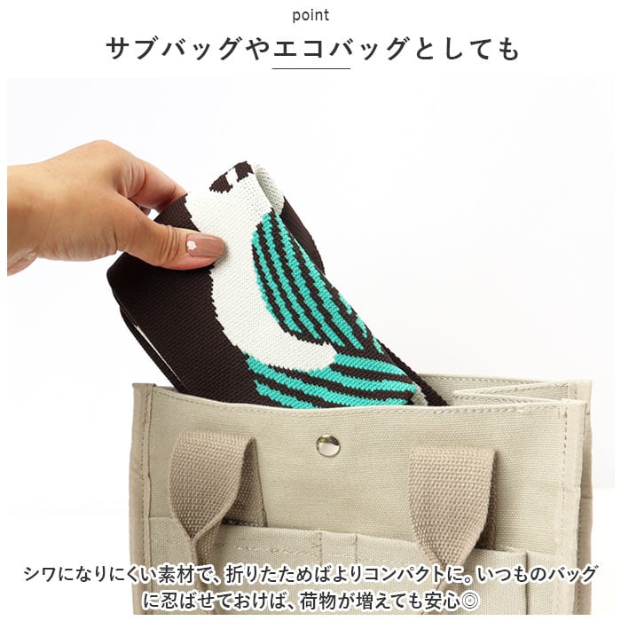 ・厚手の生地感で耐久性のあるニット素材。柔らかく伸びの良い素材なので、見た目以上の収納力!