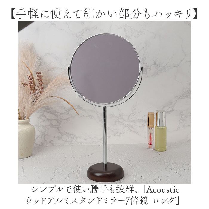 ・シンプルで使い勝手も抜群。「Acoustic ウッドアルミスタンドミラー7倍鏡 ロング」
