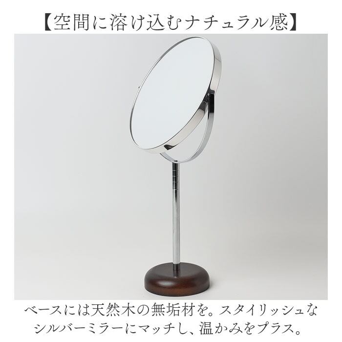 ・ベースには天然木の無垢材を。スタイリッシュなシルバーミラーにマッチし、温かみをプラス。