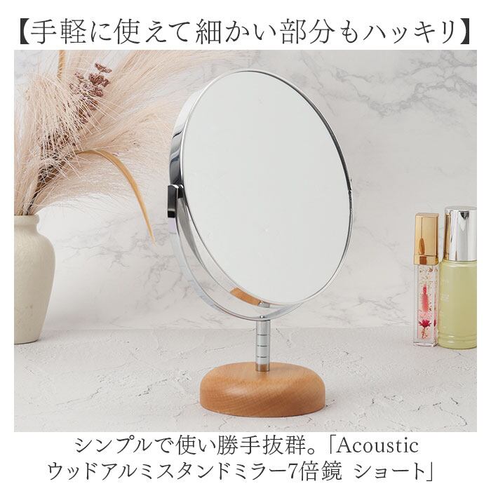 ・シンプルで使い勝手抜群。「Acoustic ウッドアルミスタンドミラー7倍鏡 ショート」