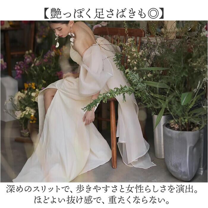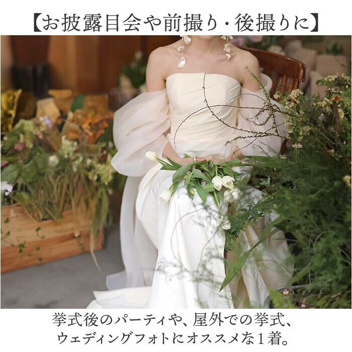 ・挙式後のパーティや、屋外での挙式、ウェディングフォトにオススメな1着。