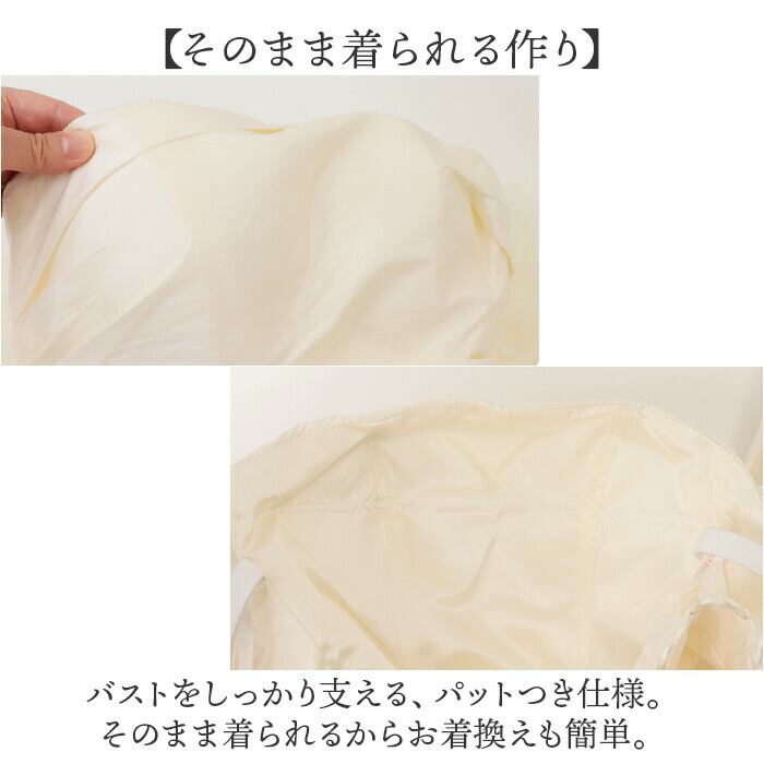 ・バストをしっかり支える、パットつき仕様。そのまま着られるからお着換えも簡単。