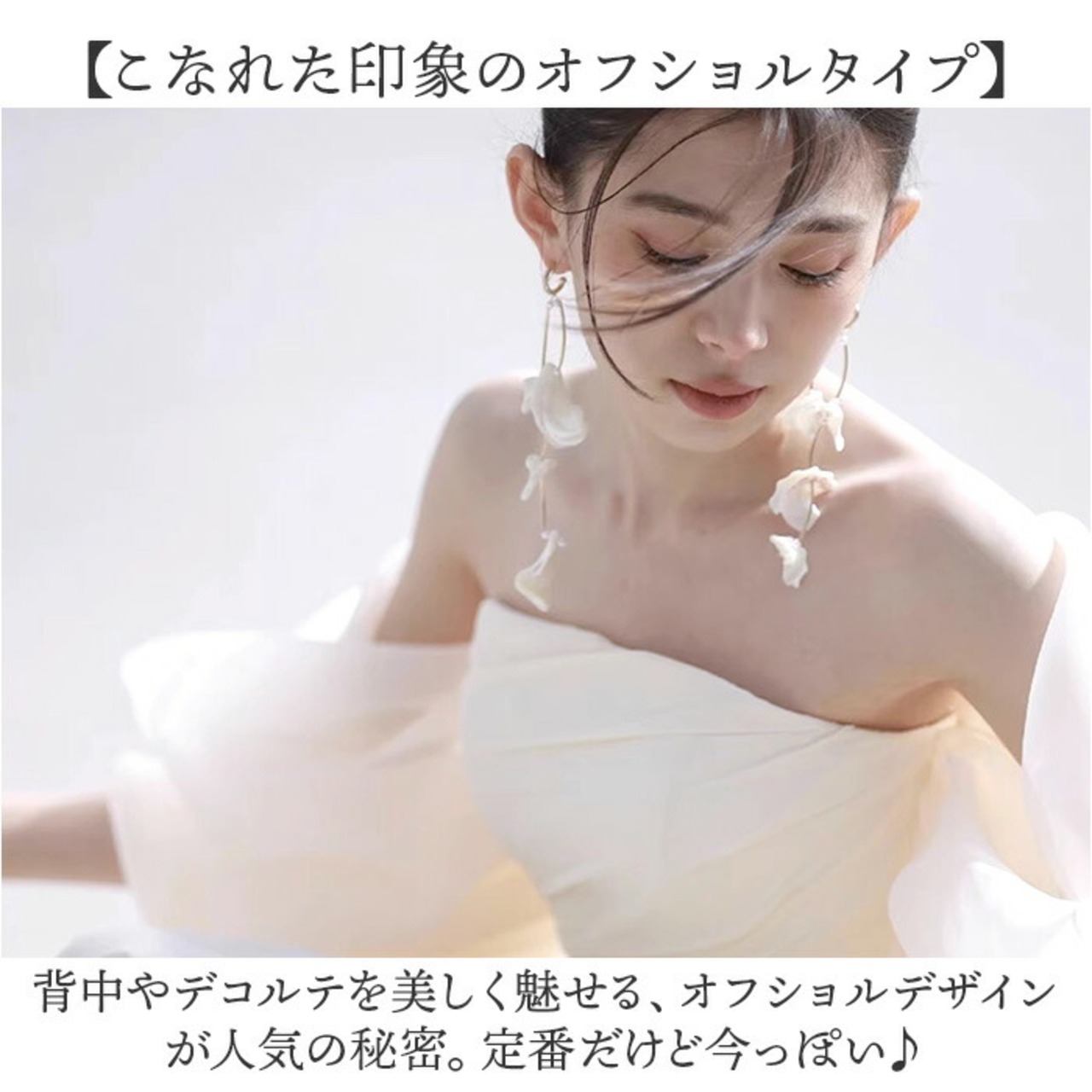 ・背中やデコルテを美しく魅せる、オフショルデザインが人気の秘密。定番だけど今っぽい♪
