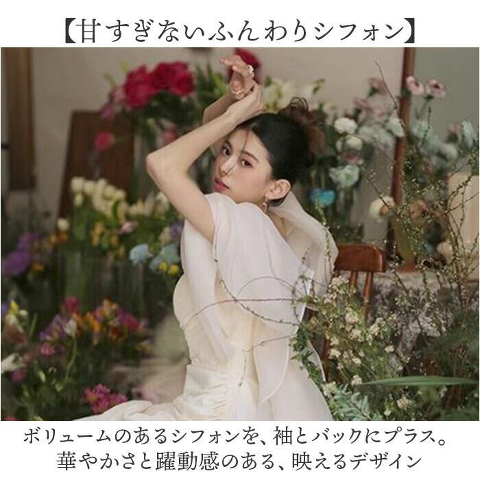 ・ボリュームのあるシフォンを、袖とバックにプラス。華やかさと躍動感のある、映えるデザイン