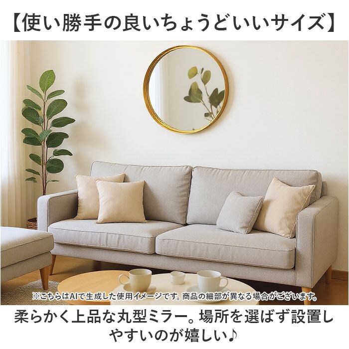 ・柔らかく上品な丸型ミラー。程よい存在感のあるLサイズは、スペースのアクセントにも。