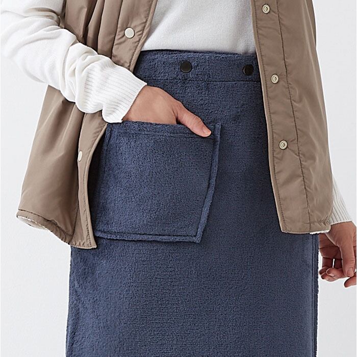 ・冷えが気になるキッチンなどで。ボタンを外せばひざ掛けになり、デスクワークのお供にも。