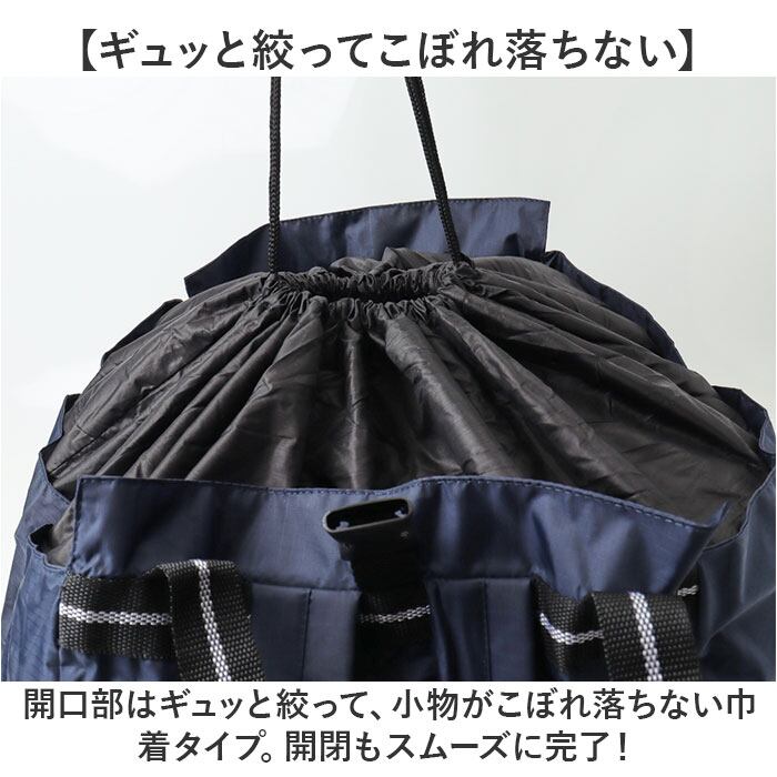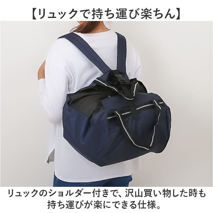 ・リュックのショルダー付きで、沢山買い物した時も持ち運びが楽にできる仕様。