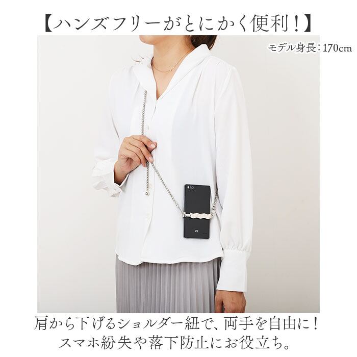 ・肩から下げるショルダー紐で、両手を自由に!スマホ紛失や落下防止にお役立ち。