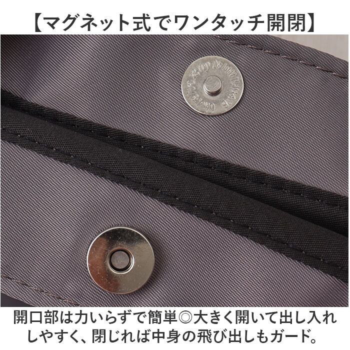 ・開口部は力いらずで簡単◎大きく開いて出し入れしやすく、閉じれば中身の飛び出しもガード。