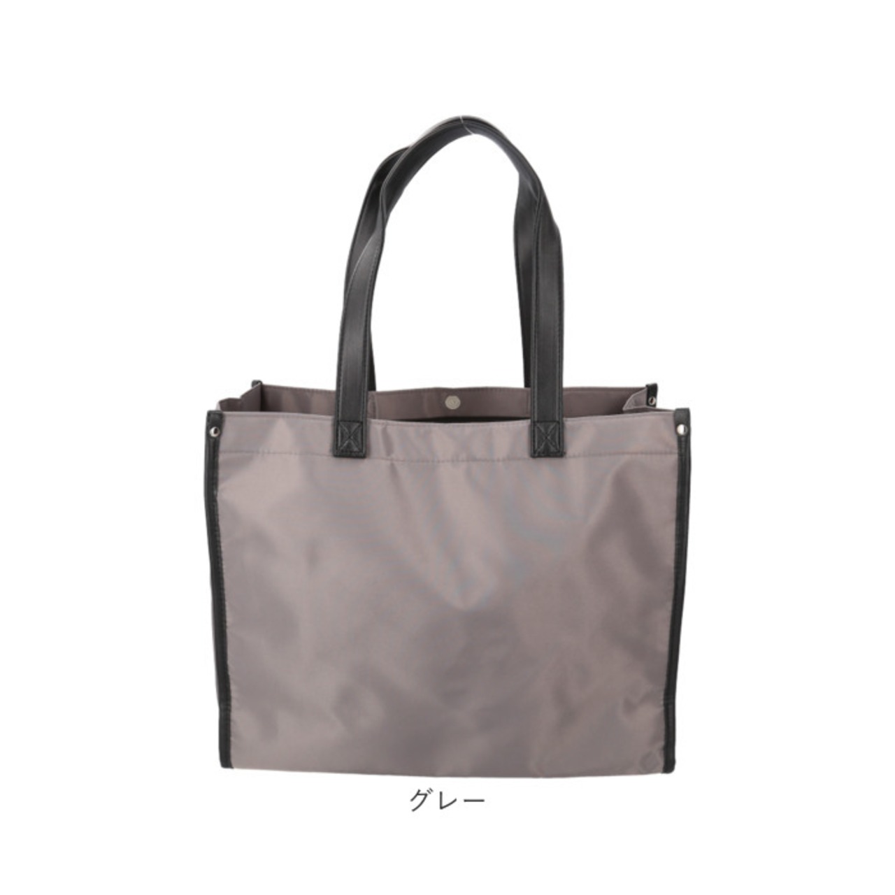 ・上品な光沢のあるナイロン素材に、合皮とメタリックをプラス。洗練されたデザインが魅力♪