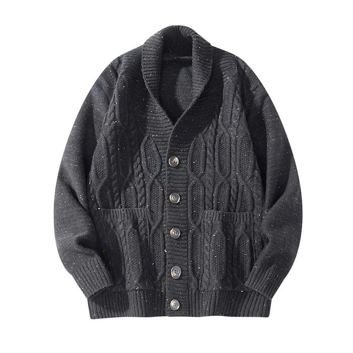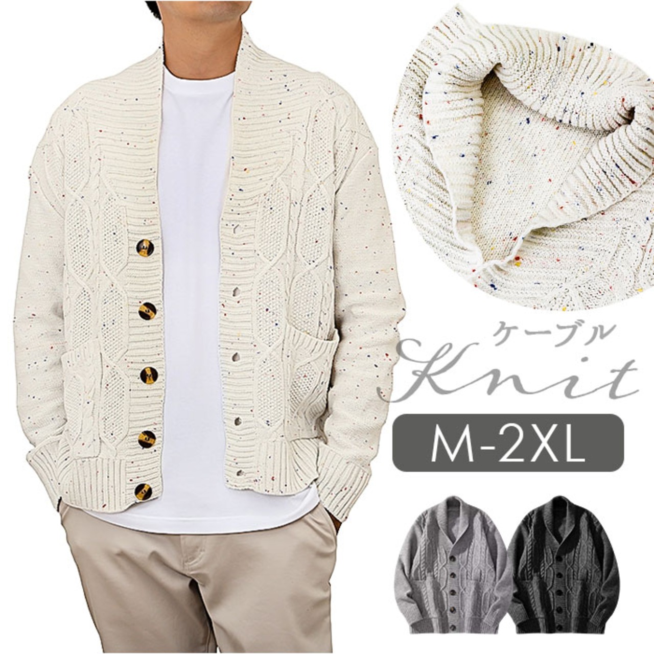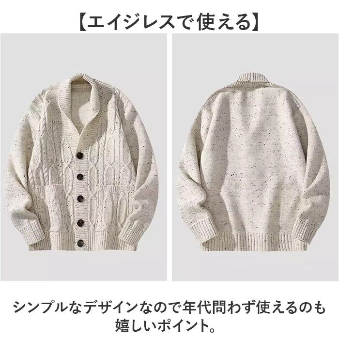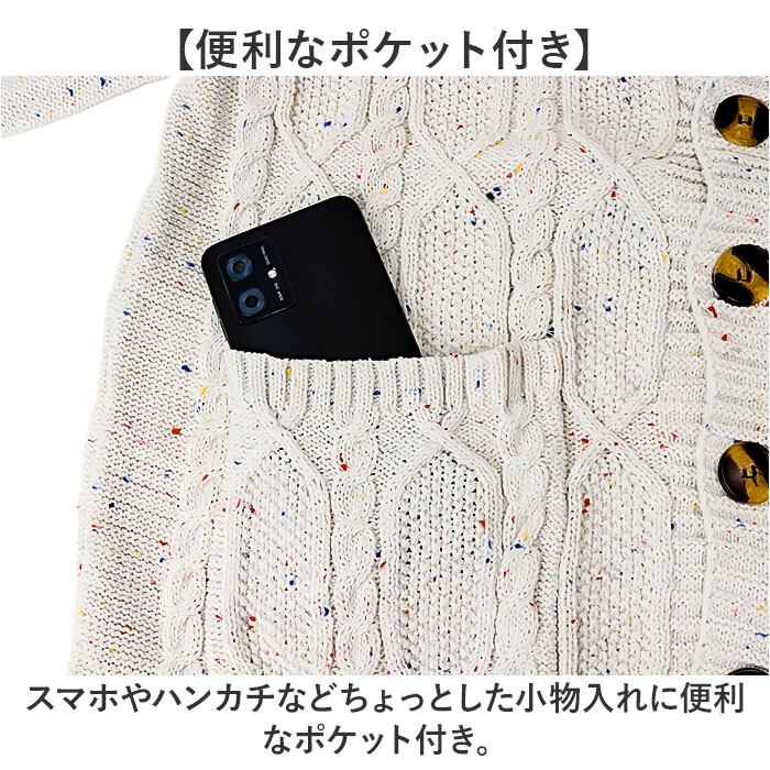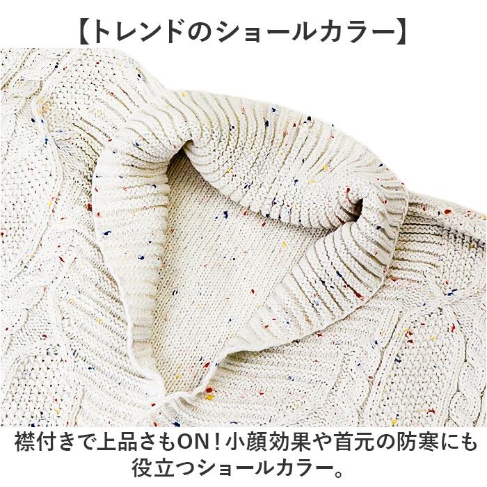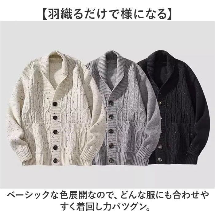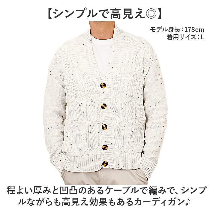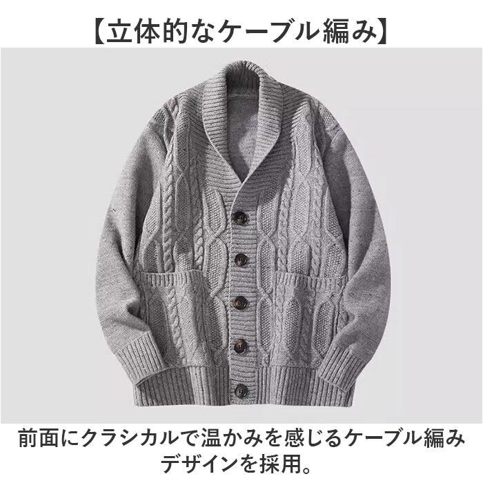 ・程よい厚みと凹凸のあるケーブルで編みで、シンプルながらも高見え効果もあるカーディガン♪