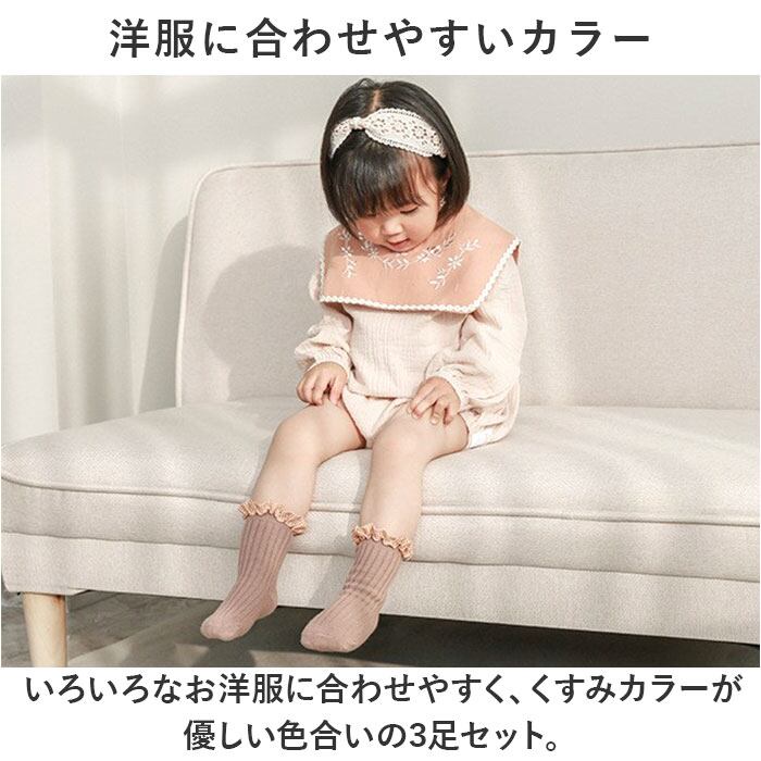 ・いろいろなお洋服に合わせやすく、くすみカラーが優しい色合いの3足セット。