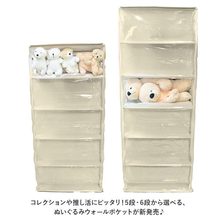 ぬいぐるみウォールポケット 5段/6段収納ケース yknyw001