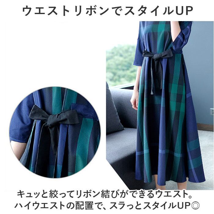 レディース ワンピース きれいめ 通販 ロングワンピース ロングワンピ ワンピ マキシワンピース マキシ 七分袖 ウエスト絞り リボン 大人可愛い おしゃれ カジュアル フォーマル ナチュラル シンプル お出かけ ゆったり 体型カバー 大きいサイズ