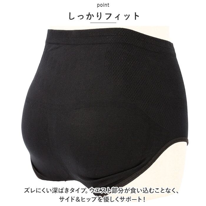 ・ズレにくい深ばきタイプ。ウエスト部分が食い込むことなく、サイド&ヒップを優しくサポート!