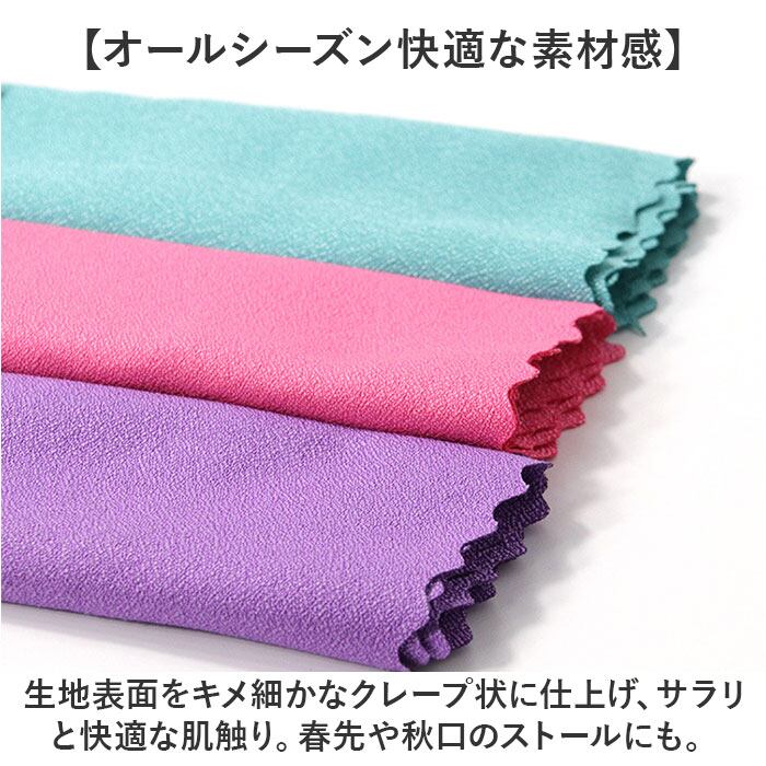 ・生地表面をキメ細かなクレープ状に仕上げ、サラリと快適な肌触り。春先や秋口のストールにも。