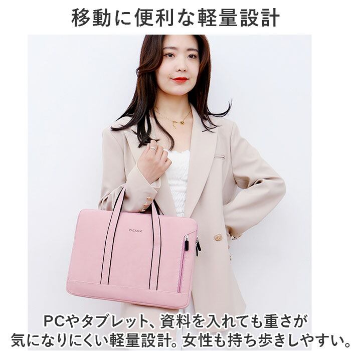 ・PCやタブレット、資料を入れても重さが気になりにくい軽量設計。女性も持ち歩きしやすい。