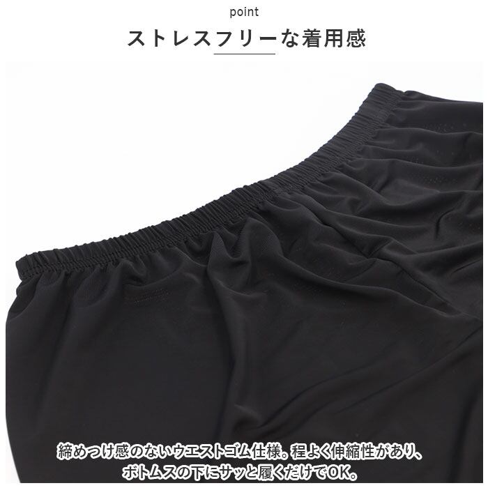 ・締めつけ感のないウエストゴム仕様。程よく伸縮性があり、ボトムスの下にサッと履くだけでOK。