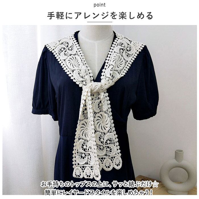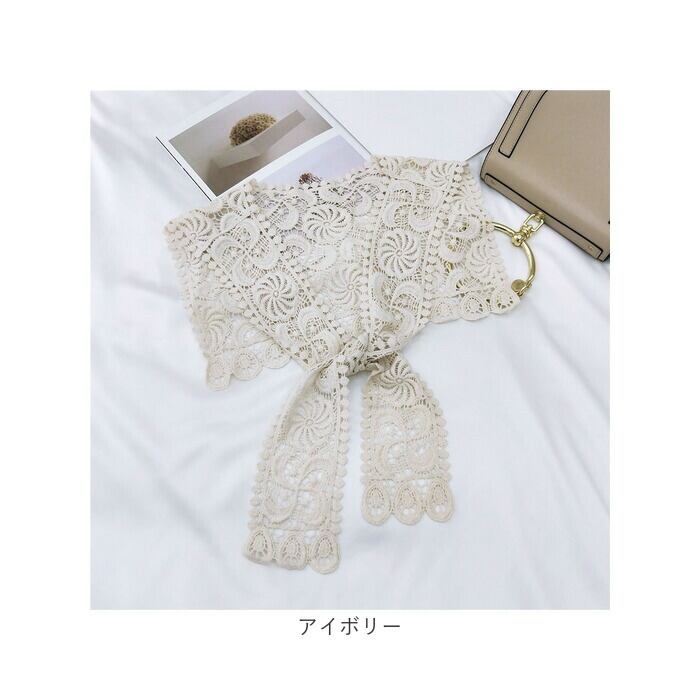 ・薄手のサラッとしたレース素材なので、シーズンレスで使える♪襟元だけのタイプなので、着ぶくれの心配も不要。