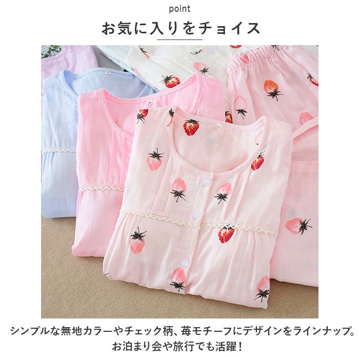 ・シンプルな無地カラーやチェック柄、苺モチーフにデザインをラインナップ。お泊まり会や旅行でも活躍!