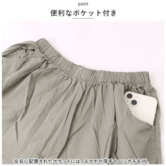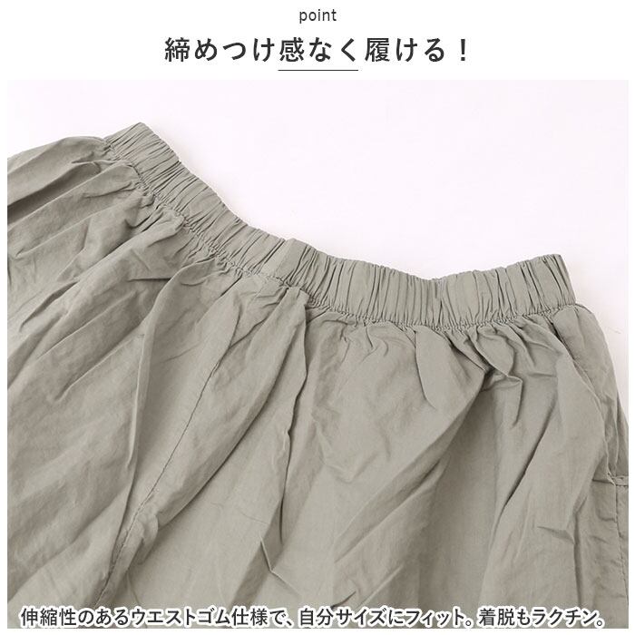 ・伸縮性のあるウエストゴム仕様で、自分サイズにフィット。着脱もラクチン。