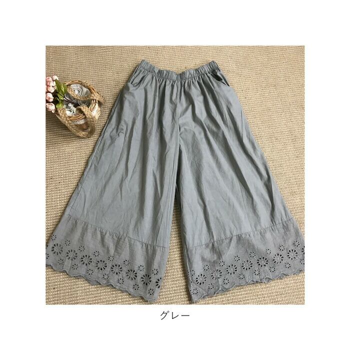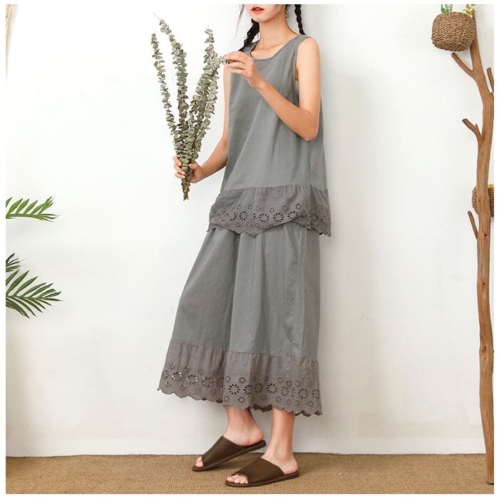 ・ナチュラルな風合いのコットン生地に、裾元の型抜きデザインがアクセント。